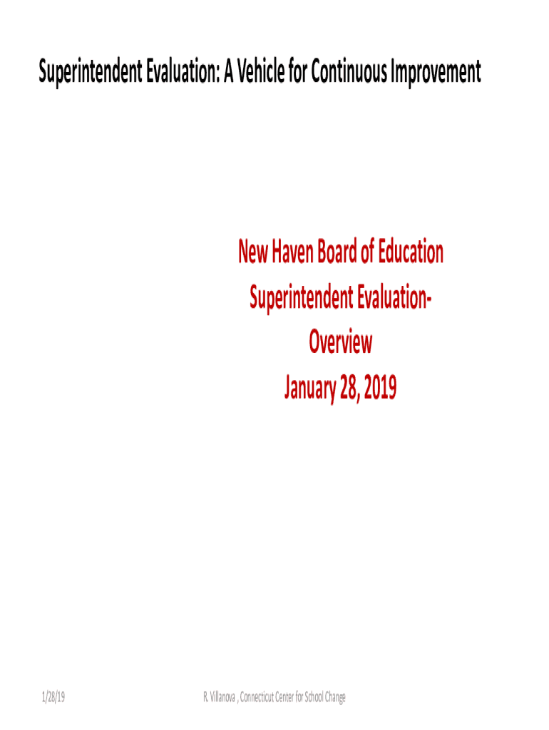 Superintendent Evaluation: A Vehicle for Continuous Improvement Haven Board of Education Superintendent EvaluationOverview January 28, 20191/28/19R. Villanova, Connecticut Center for School Change