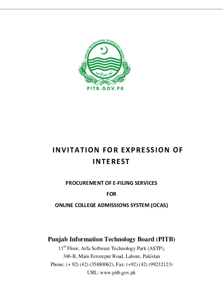 Get the free INVITATION FOR EXPRESSION OF INTEREST - eproc.punjab.gov.pk