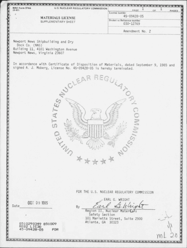 Get the free Amend 2,terminating License 45-09428-05 for Newport News Shipbuilding & Dry ...