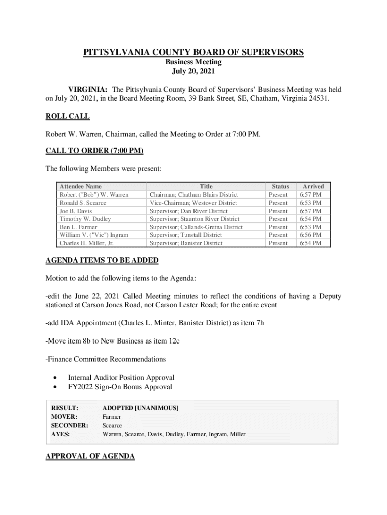 Get the free Board of SupervisorsPittsylvania County, VA - Official ...
