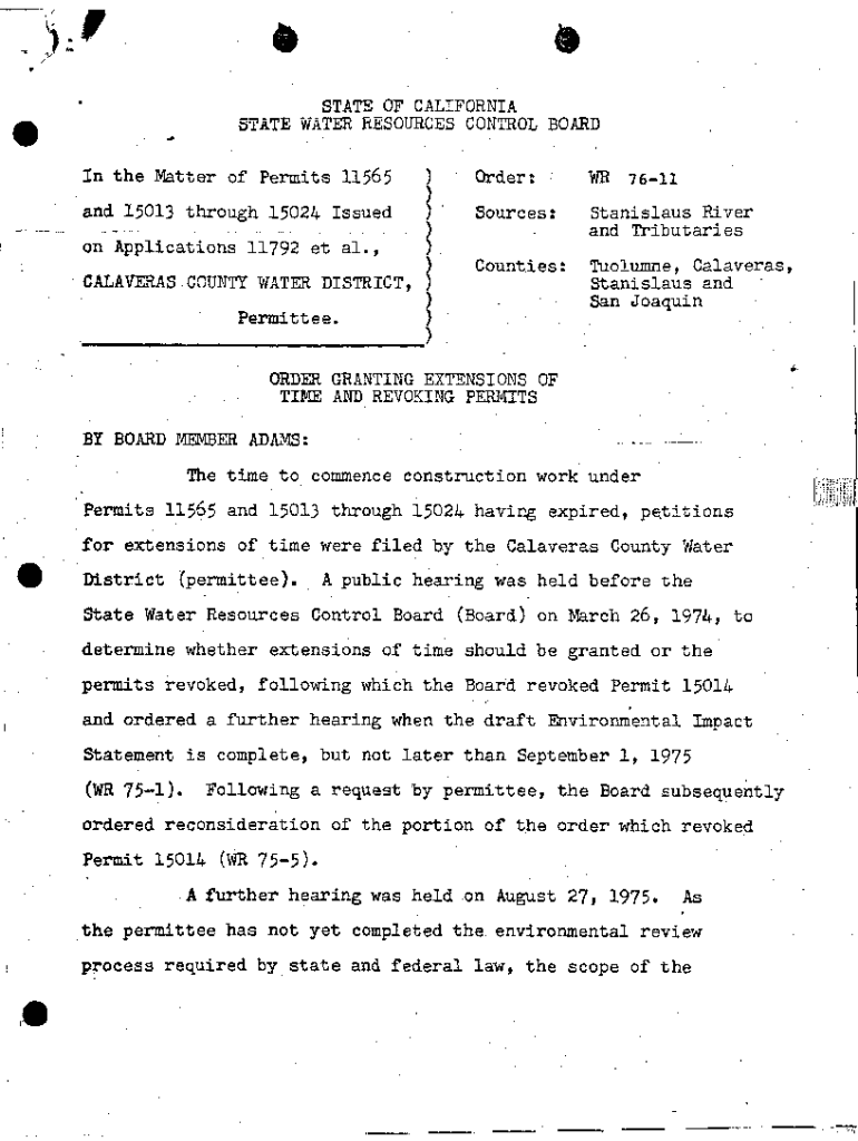 . STATEaSTATE OF CALIFORNIA RESOURCES CONTROL BOARDViATEEIn the Matter of Permits 11565)Order:Brand 15013 through 15024 Issued. . 011 Applications 11792 et al., .1Sources:Stanislaus River and TributariesCounties:Toluene,