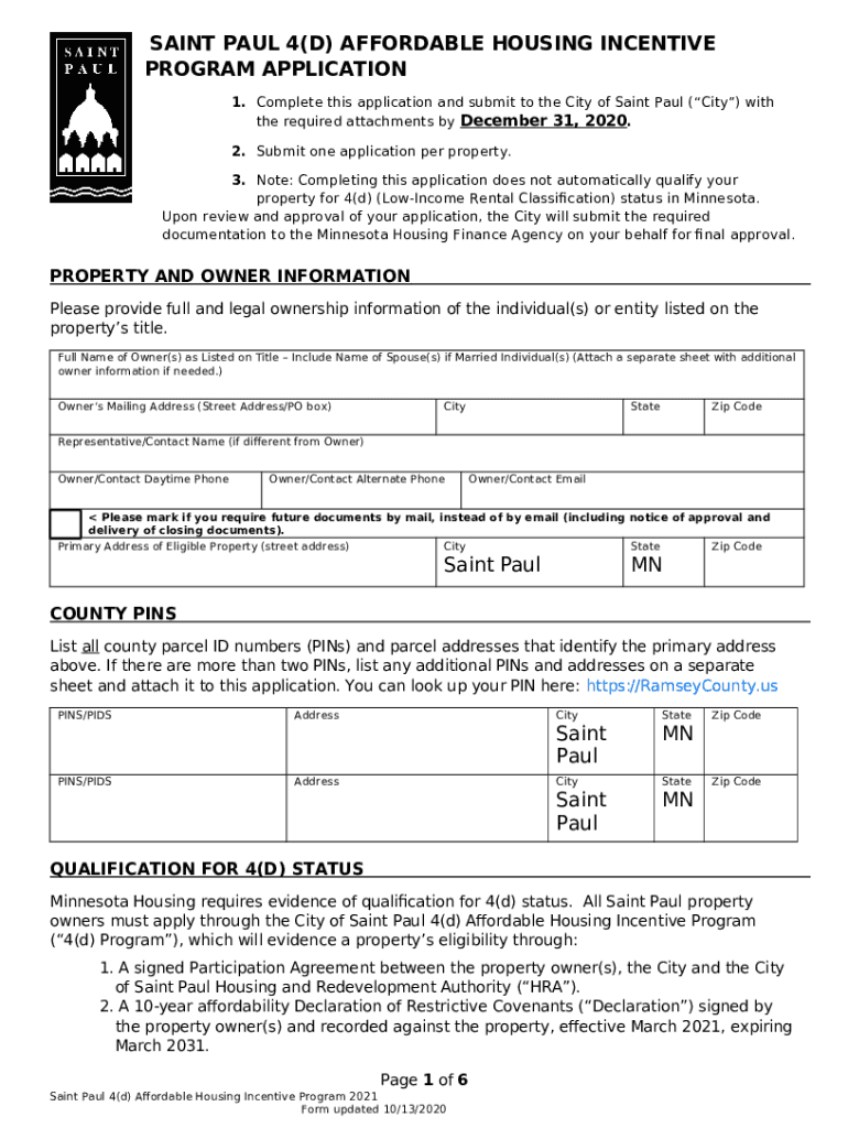 What is PLANNING AND ECONOMIC DEVELOPMENT CITY OF SAINT PAUL 4(D ... Form?