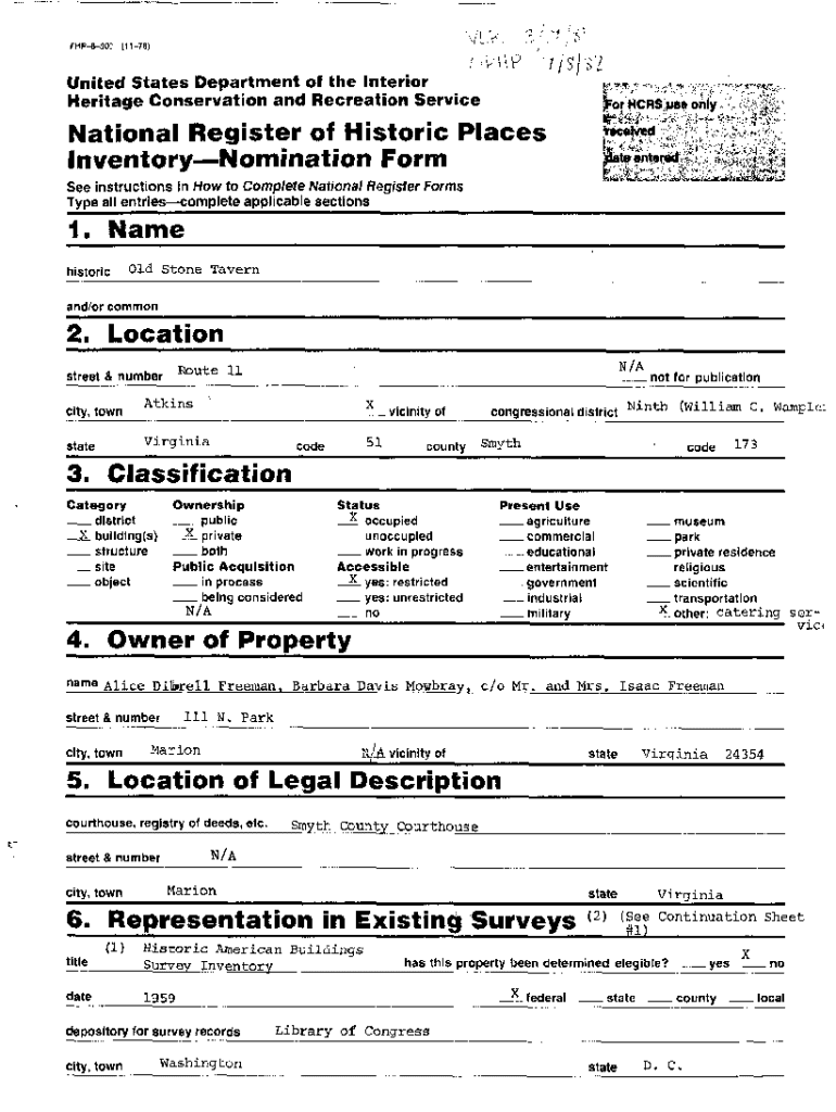 . .i, .,jyju2United States Department of the Interior Heritage Conservation and Recreation ServiceNational Register of Historic Places InventoryNomination Form See instructions i n H o w to Complete
