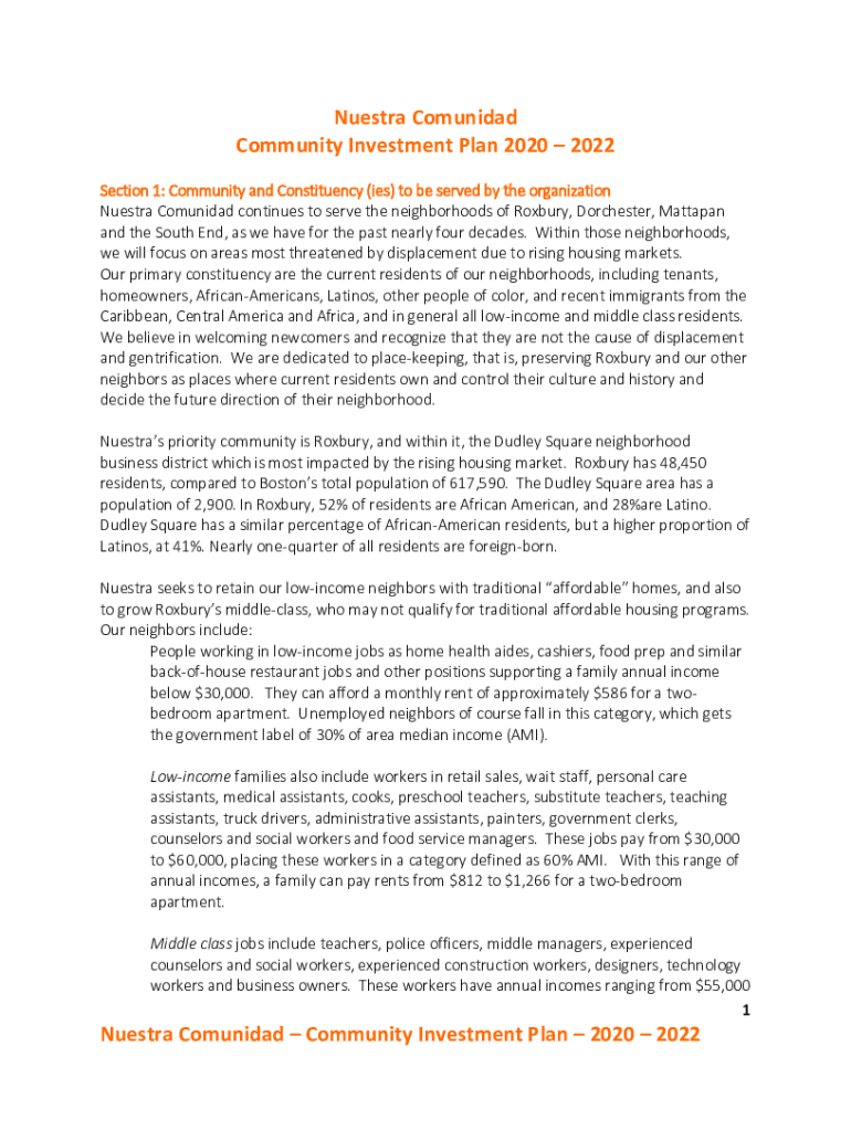 Questran Communized Community Investment Plan 2020 2022 Section 1: Community and Constituency (IES) to be served by the organization Questran Communized continues to serve the neighborhoods of Roxbury,