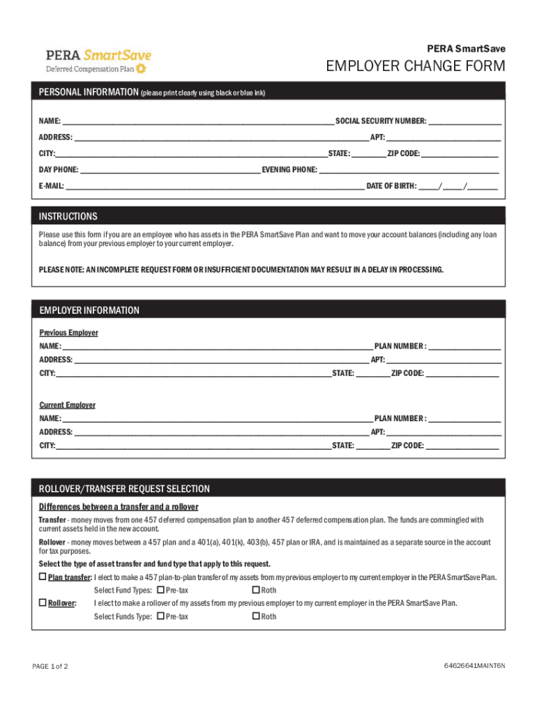 ERA SmartSaveEMPLOYER CHANGE FORM PERSONAL INFORMATION (please print clearly using black or blue ink) NAME: SOCIAL SECURITY NUMBER: ADDRESS: APT: CITY: STATE: ZIP CODE: DAY PHONE: EVENING PHONE: EMAIL: