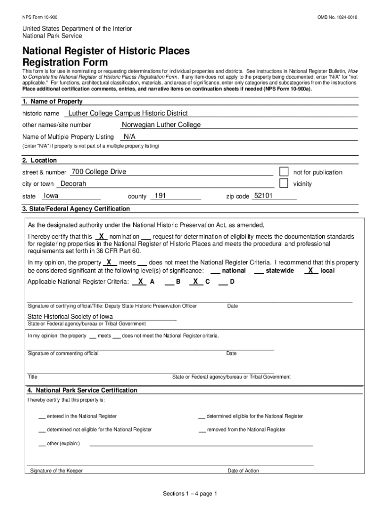 NPS Form 10900OMB No. 10240018United States Department of the Interior National Park ServiceNational Register of Historic Places Registration Form This form is for use in nominating or requesting
