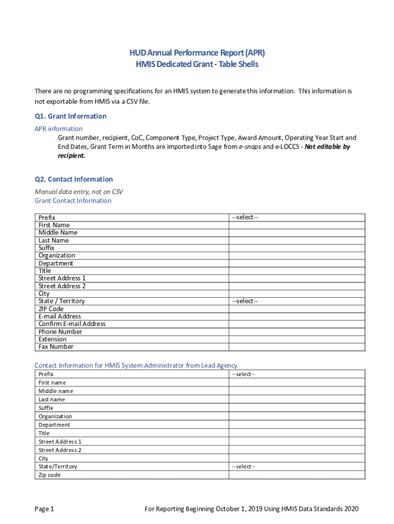 Get the free HMIS Dedicated Grant APR Table Shells - HUD Exchange