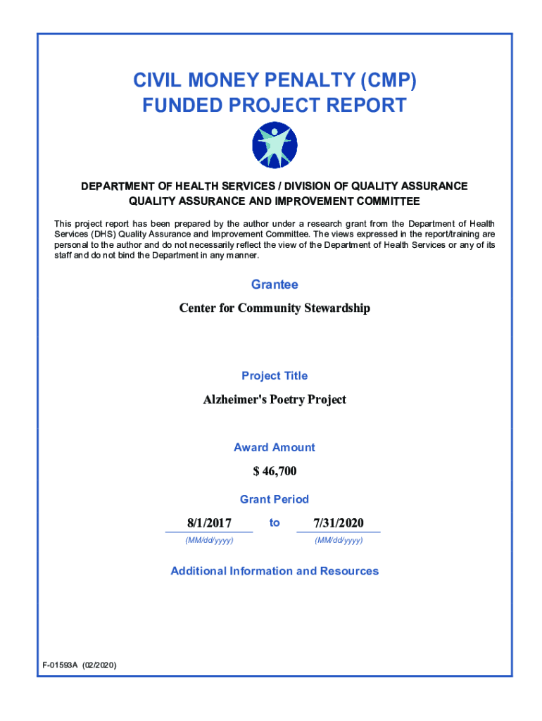 Get the free Civil Money Penalty (CMP) Funded Project Report - Center for ...