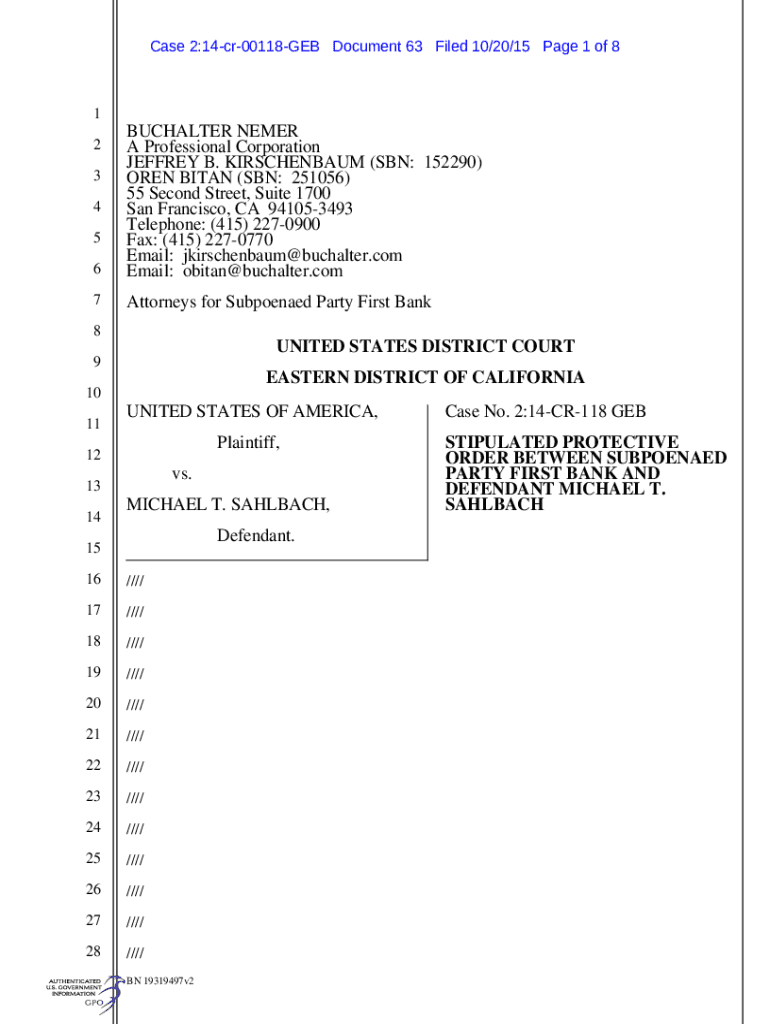 Case 2:14cr00118GEB Document 63 Filed 10/20/15-Page 1 of 816BUCHALTER NEVER A Professional Corporation JEFFREY B. KIRSCHENBAUM (SON: 152290) OPEN TITAN (SON: 251056) 55 Second Street, Suite 1700 San
