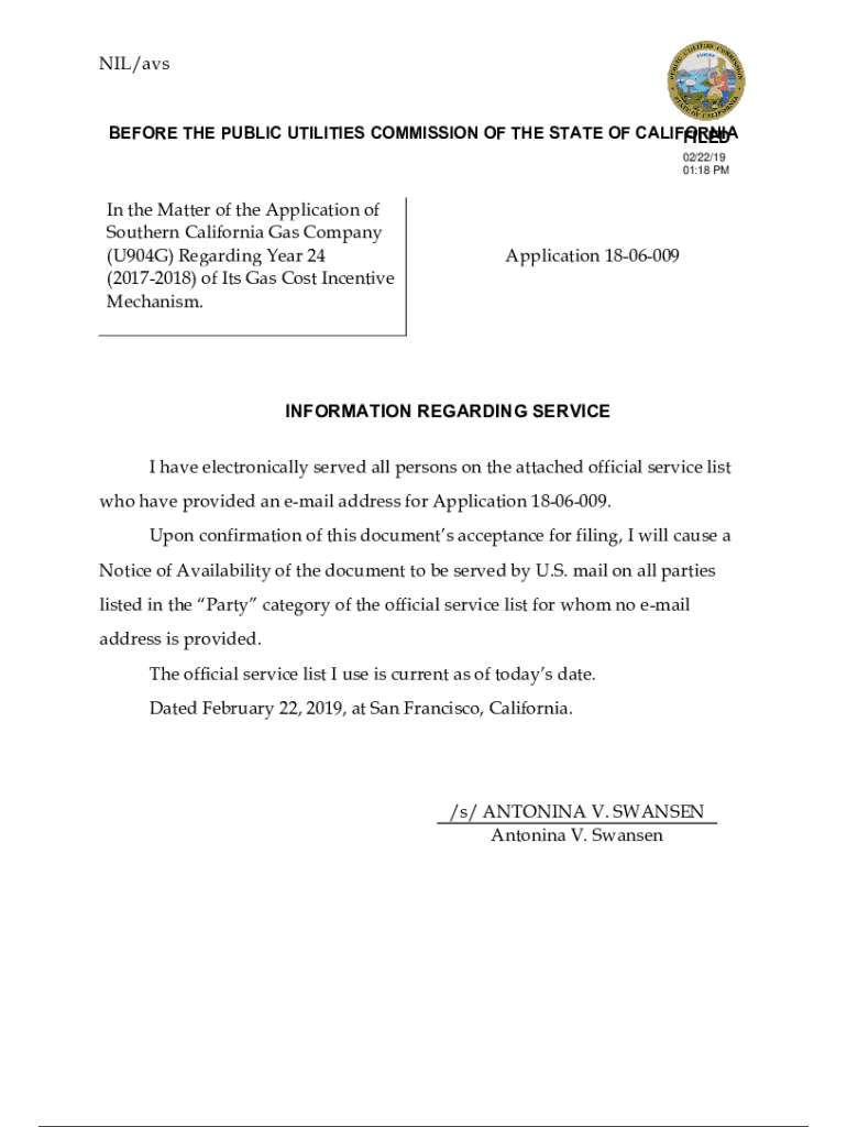 Get the free NIL/avs In the Matter of the Application of Southern California Gas ... - docs cpuc ca