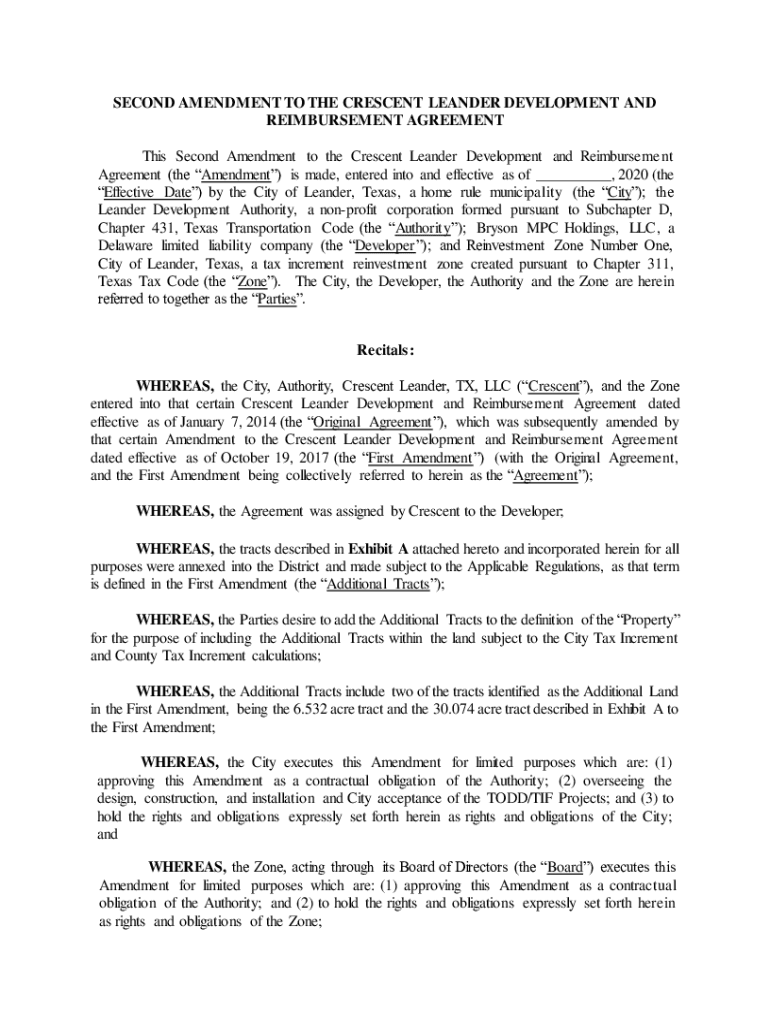 SECOND AMENDMENT TO THE CRESCENT LEANDER DEVELOPMENT AND REIMBURSEMENT AGREEMENT This Second Amendment to the Crescent Leander Development and Reimbursement Agreement (the Amendment) is made, entered