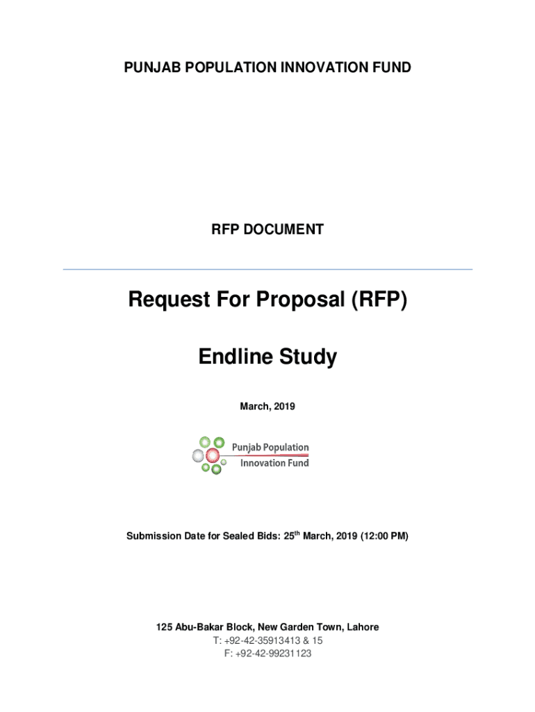 PUNJAB POPULATION INNOVATION FUND RFP DOCUMENTRequest For Proposal (RFP) End line Study March, 2019Submission Date for Sealed Bids: 25th March 2019 (12:00 PM)125 Abubakar Block, New Garden Town, Lahore