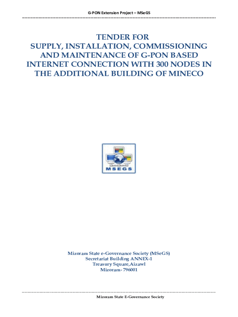 UPON Extension Project Megs TENDER FOR SUPPLY, INSTALLATION, COMMISSIONING AND MAINTENANCE OF UPON BASED INTERNET CONNECTION WITH 300 NODES IN THE ADDITIONAL BUILDING OF MINECOMizoram State governance