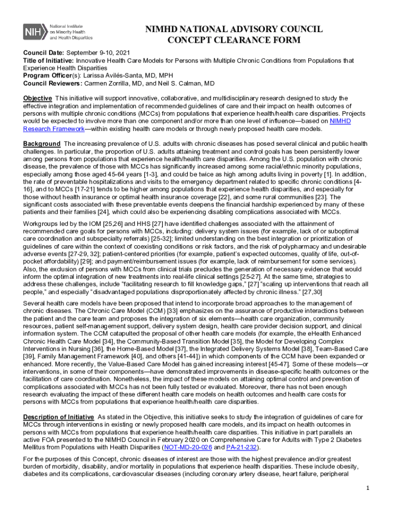 Get the free NIMHD National Advisory Council Concept Clearance Form