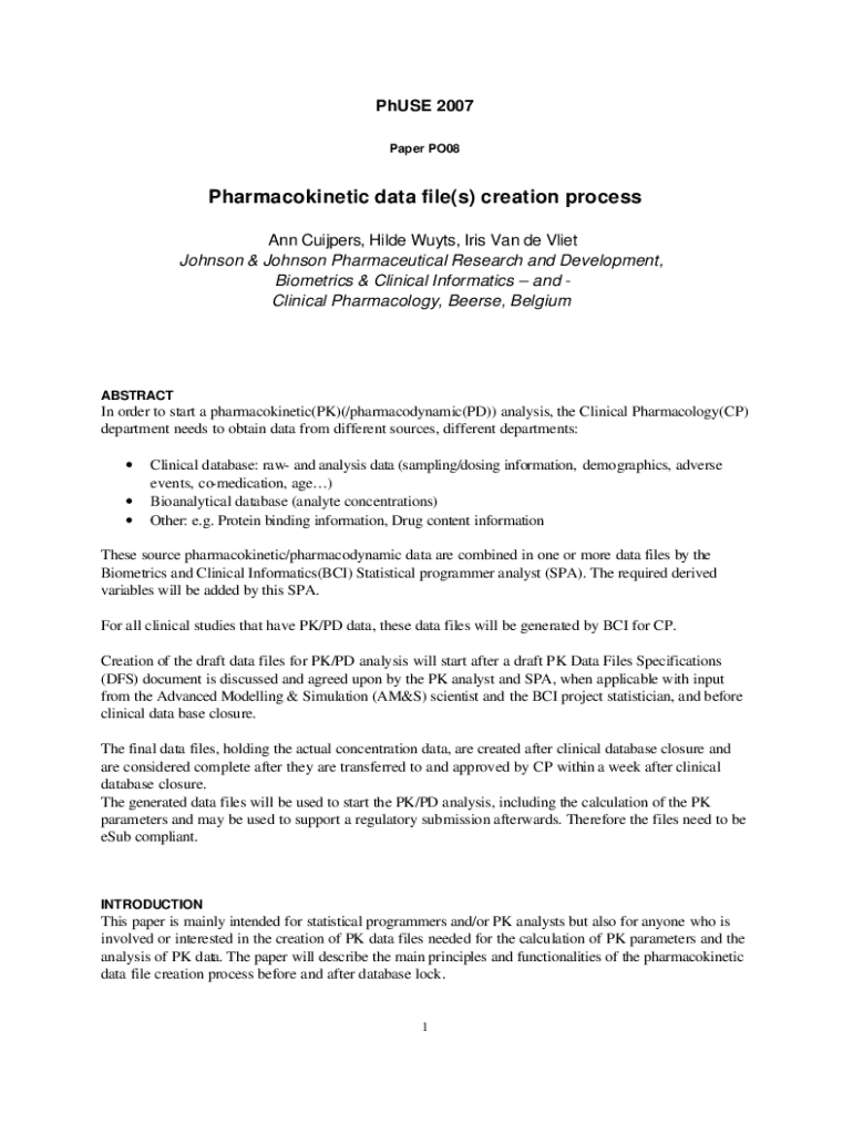 Phase 2007 Paper PO08Pharmacokinetic data file(s) creation process Ann Clippers, Hide Ways, Iris Van de Vliet Johnson & Johnson Pharmaceutical Research and Development, Biometrics & Clinical Informatics