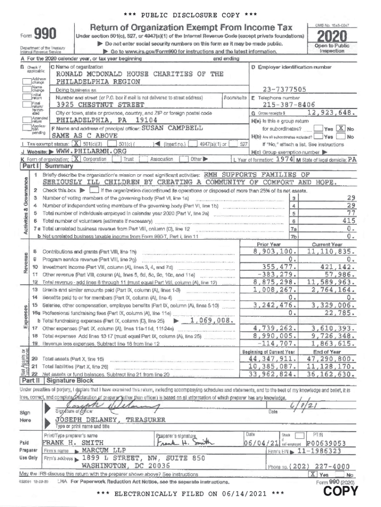 *** PUBLIC DISCLOSURE COPY ****** ELECTRONICALLY FILED ON 06/14/2021 ***CORONAL McDonald HOUSE CHARITIES OF THE PHILADELPHIA REGION Form 990 (2020) Part III Statement of Program Service Accomplishments237377505Page