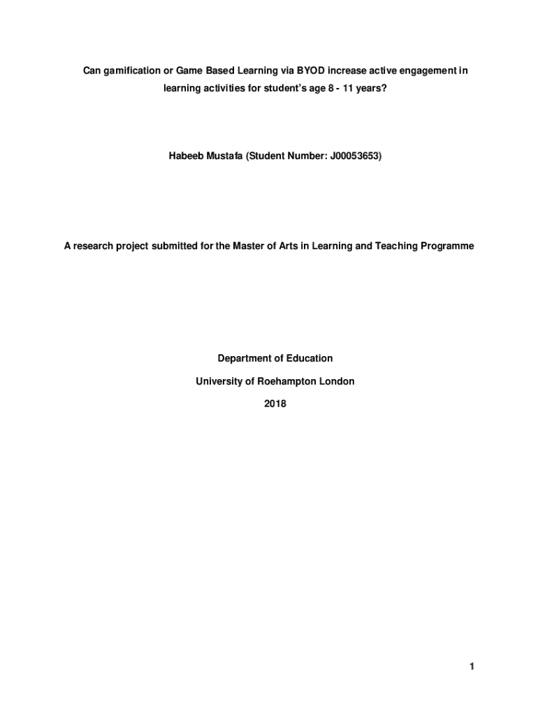 Can gamification or Game Based Learning via BYOD increase active engagement in learning activities for students age 8 11 years? Haber Mustafa (Student Number: J00053653)A research project submitted