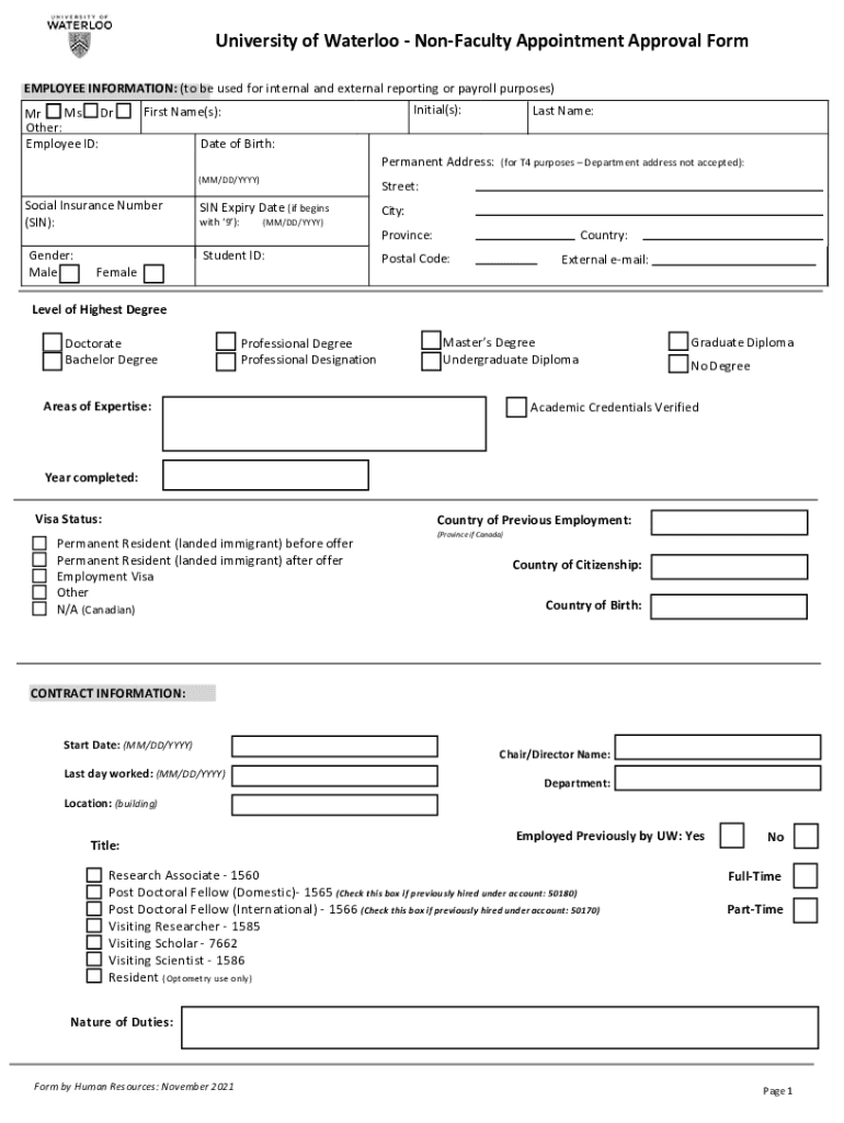 Get the free Non-Faculty Appointment Approval Form - University Of ...