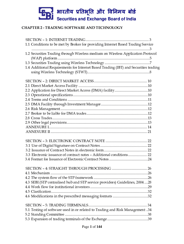 Securities and Exchange Board of India CHAPTER 2 TRADING SOFTWARE AND TECHNOLOGY SECTION 1: INTERNET TRADING ...................................................................... 3 1.1 Conditions