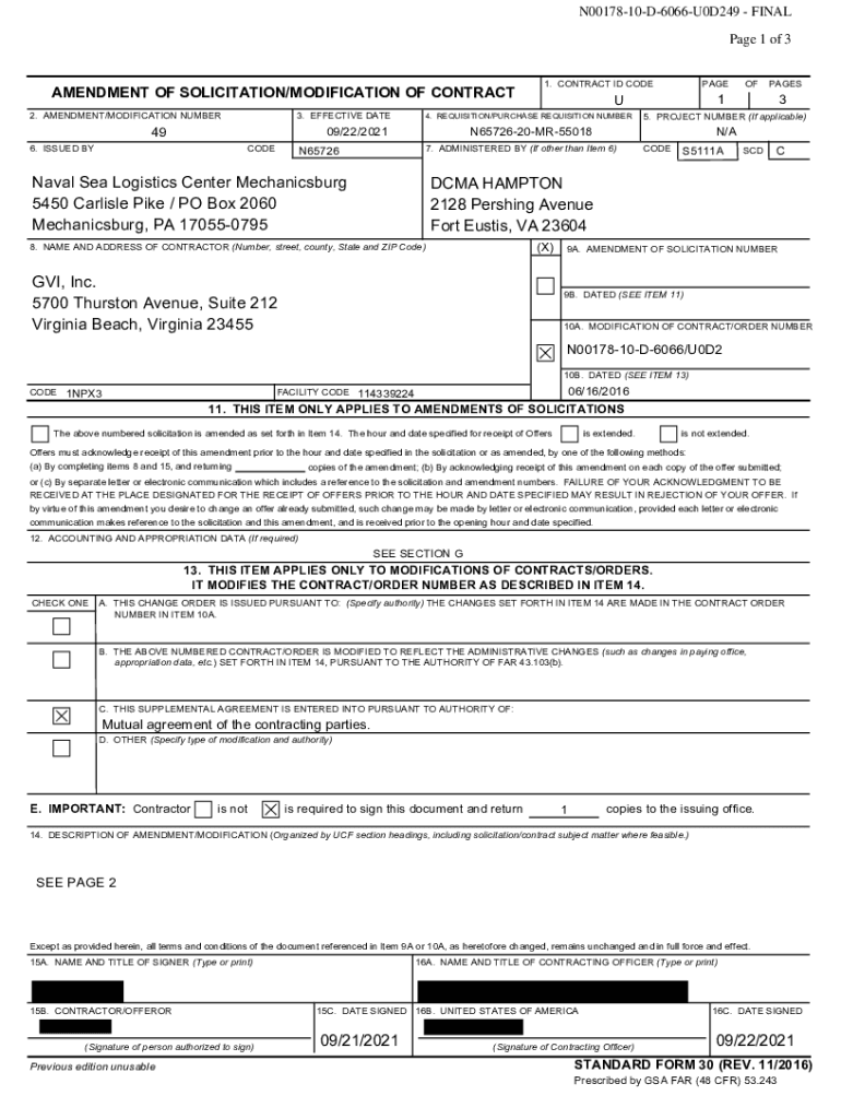N0017810D6066U0D249 FINAL Page 1 of 3AMENDMENT OF SOLICITATION/MODIFICATION OF CONTRACT 2. AMENDMENT/MODIFICATION NUMBER3. EFFECTIVE DATE49 Coeval Sea Logistics Center Mechanicsburg 5450 Carlisle