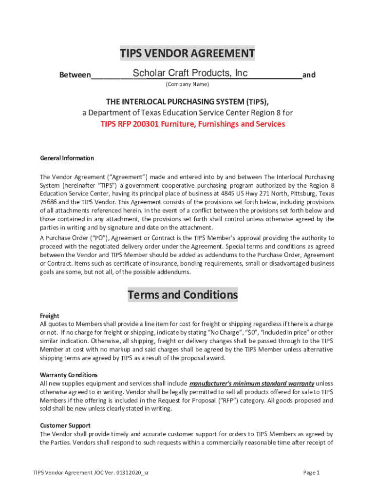 Scholar Craft Products, Inc, /&6666666666666&;(&) '2& 7 82)+& '(1, ('+/ '+ “('N(+ ;;;*&!, ×2*&!+ !&+&*.!+ &*$ & '*%, '& The Vendor Agreement (Agreement) made and entered into by and between ! '+%(%.+!,