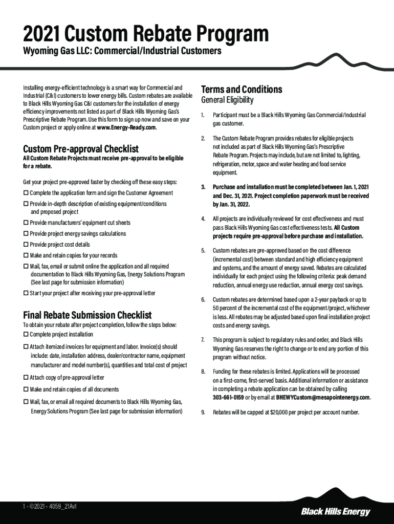 2021 Custom Rebate Program Wyoming Gas LLC: Commercial/Industrial Customers Installing energy efficient technology is a smart way for Commercial and Industrial (C&I) customers to lower energy bills.