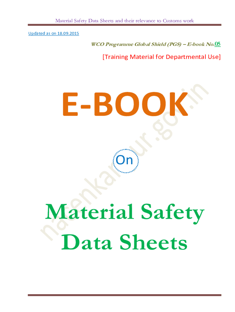 Material Safety Data Sheets and their relevance to Customs work Updated as on 18.09.2015WCO Program Global Shield (PGS) E-Book No.05[Training Material for Departmental Use]BOOK Nonmaterial Safety