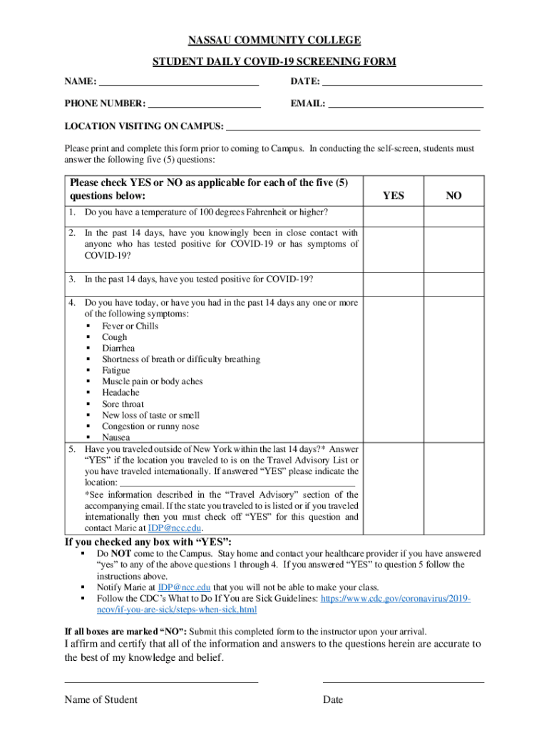Get the free NCC STUDENT DAILY COVID-19 SCREENING FORM