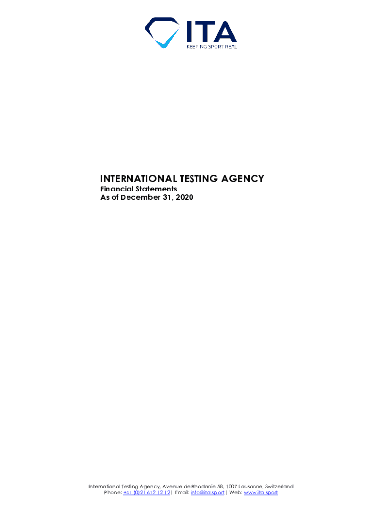 INTERNATIONAL TESTING AGENCY Financial Statements As of December 31, 2020International Testing Agency, Avenue de Rhodanie 58, 1007 Lausanne, Switzerland Phone: +41 (0)21 612 12 12 Email: info ITA.sport