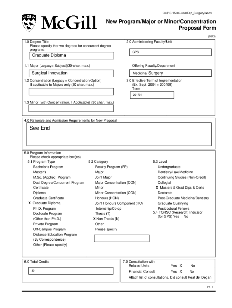 CAPS.15.34GradDip_SurgeryInnovNew Program/Major or Minor/Concentration Proposal Form (2013)1.0 Degree Title Please specify the two degrees for concurrent degree programsGraduate Diploma 1.1 Major