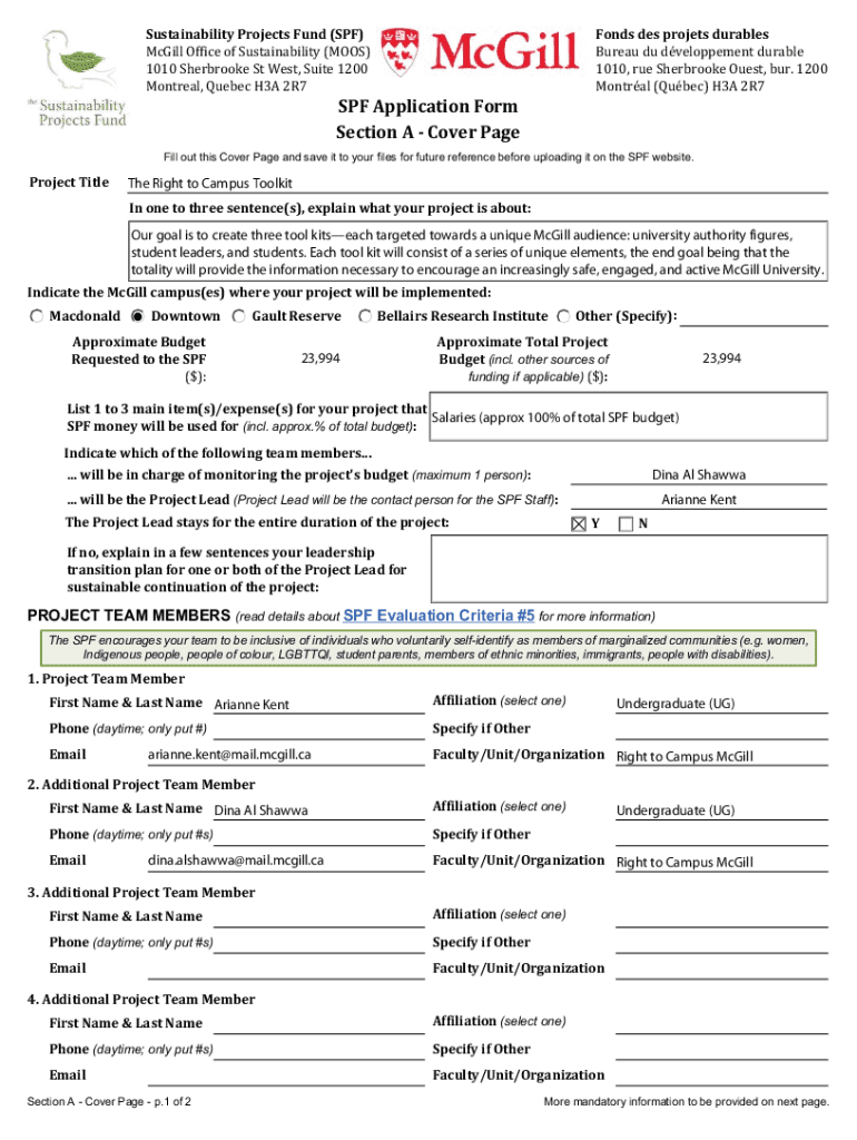 How to fill out pgssmcgillcaensustainability-projects-fund-spfsustainability projects fund spf