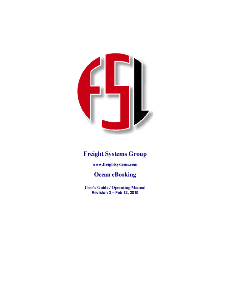 Freight Systems Group www.freightsystems.comOcean booking Users Guide / Operating Manual Revision 3 Feb 12, 2010 Copyright 2010 by Freight Systems Group. All rights reserved. No part of this book