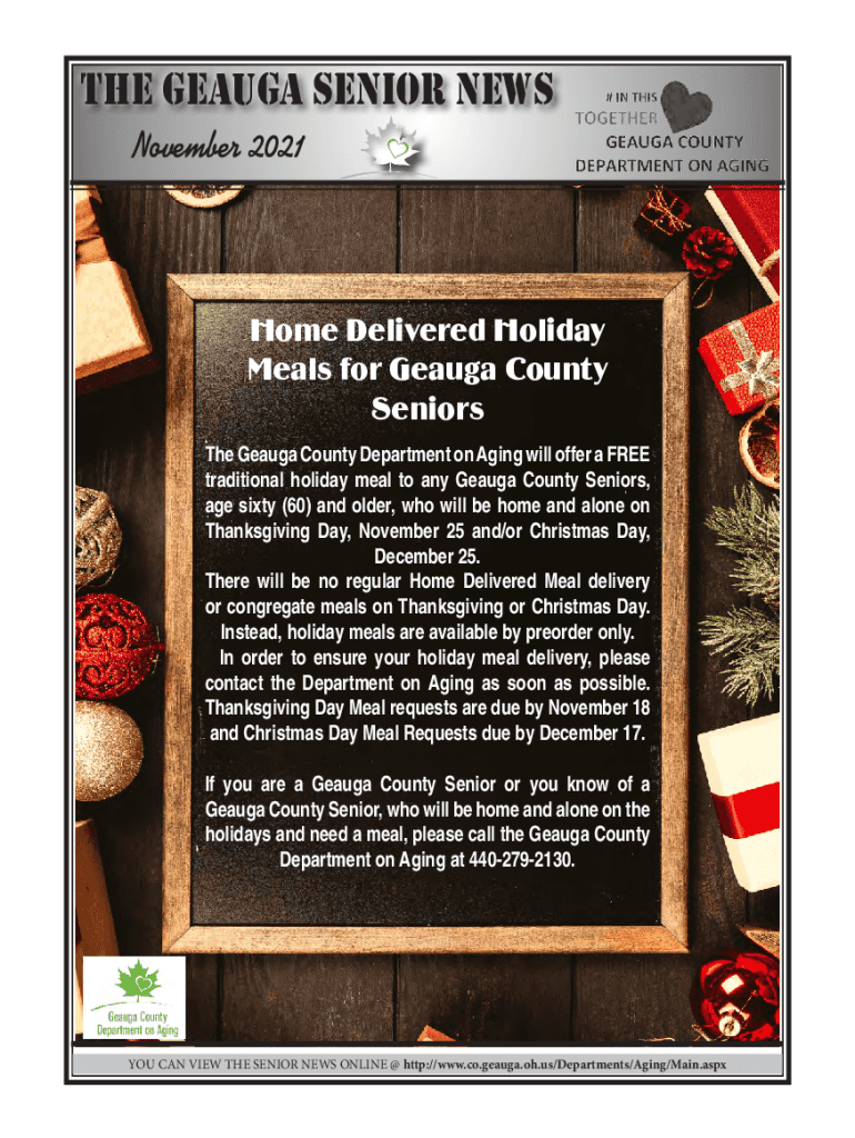 The Gauge Senior News November 2021Home Delivered Holiday Meals for Gauge County Seniors The Gauge County Department on Aging will offer a FREE traditional holiday meal to any Gauge County Seniors,