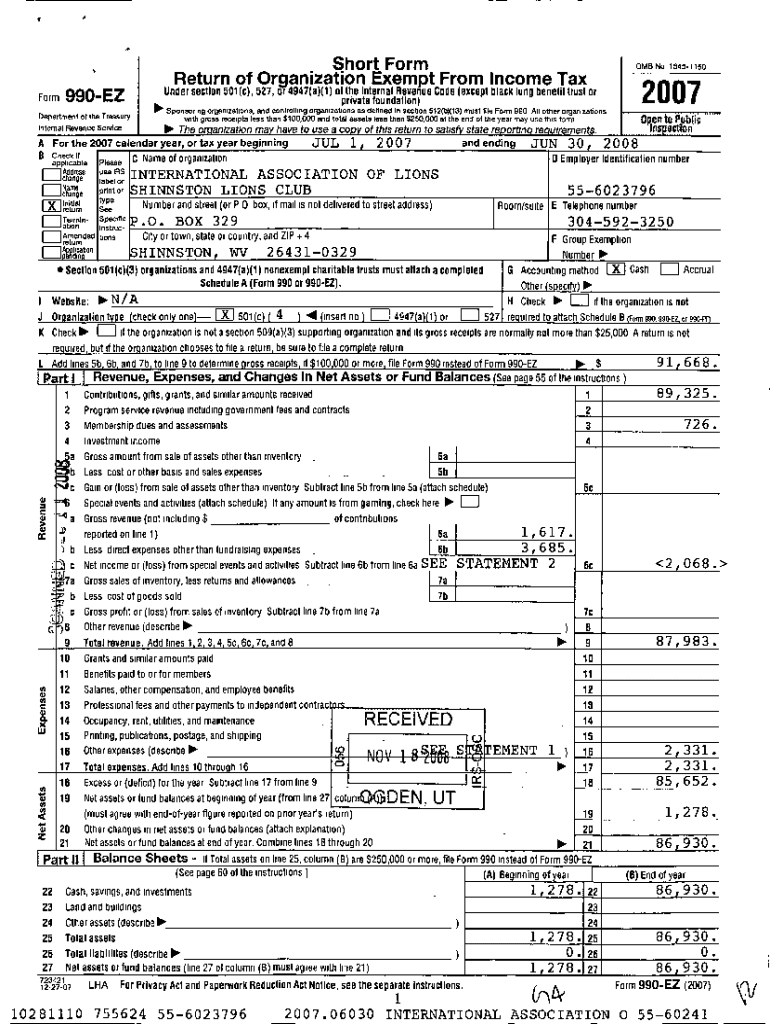 Short Form Return of Organization Exempt From Income Tax FormB200 7Under section 501 (c), 527, or 4947(a)(1) of the Internal Revenue Code (except black lung benefit trust or private foundation)990EZ