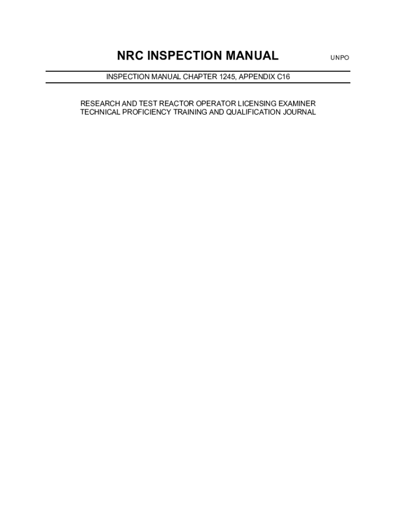 NRC INSPECTION MANUAL CHAPTER 1245, APPENDIX C16 RESEARCH AND TEST REACTOR OPERATOR LICENSING EXAMINER TECHNICAL PROFICIENCY TRAINING AND QUALIFICATION JOURNALUNPOTable of Contents Introduction ................................................................................................................................