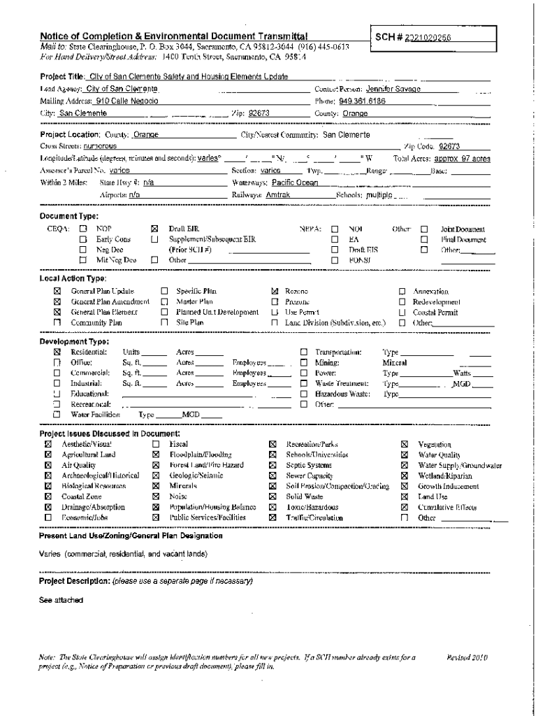 Get the free Notice of Completion Environmental Document Transmittal ...