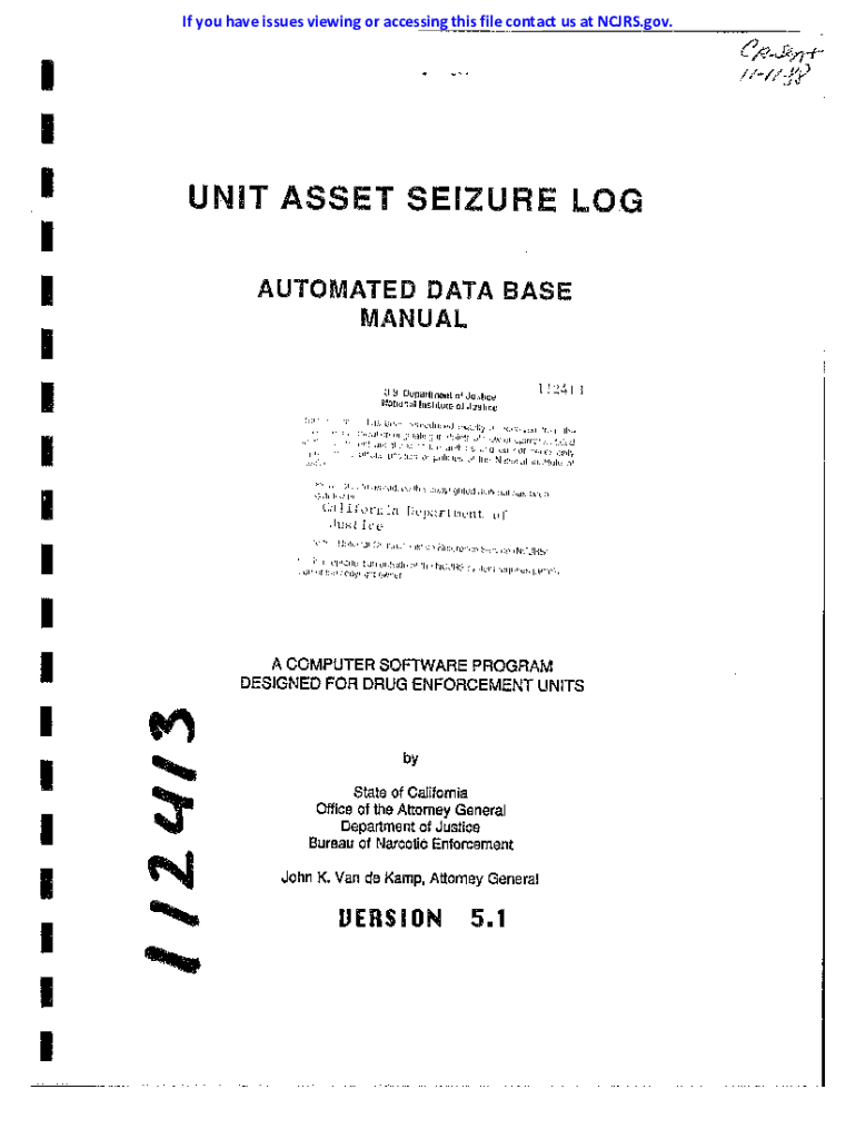 If you have issues viewing or accessing this file contact us at CARS.gov. I I I I I UNIT ASSET SEIZURE LOG AUTOMATED DATA BASEMAN UAL\'I I I I I I I I I I I I I(J. P:l1i\' //I/:1\'Y\'...........112411U