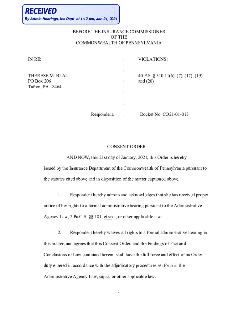 Get the free BLAU Consent Order CO21-01-013 Signed by BLAU.pdf