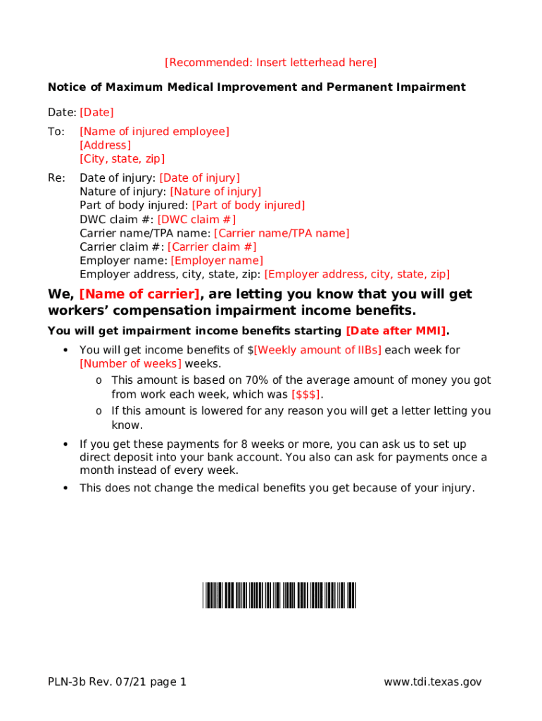 How to fill Notice of Maximum Medical Improvement and No Permanent ... word template