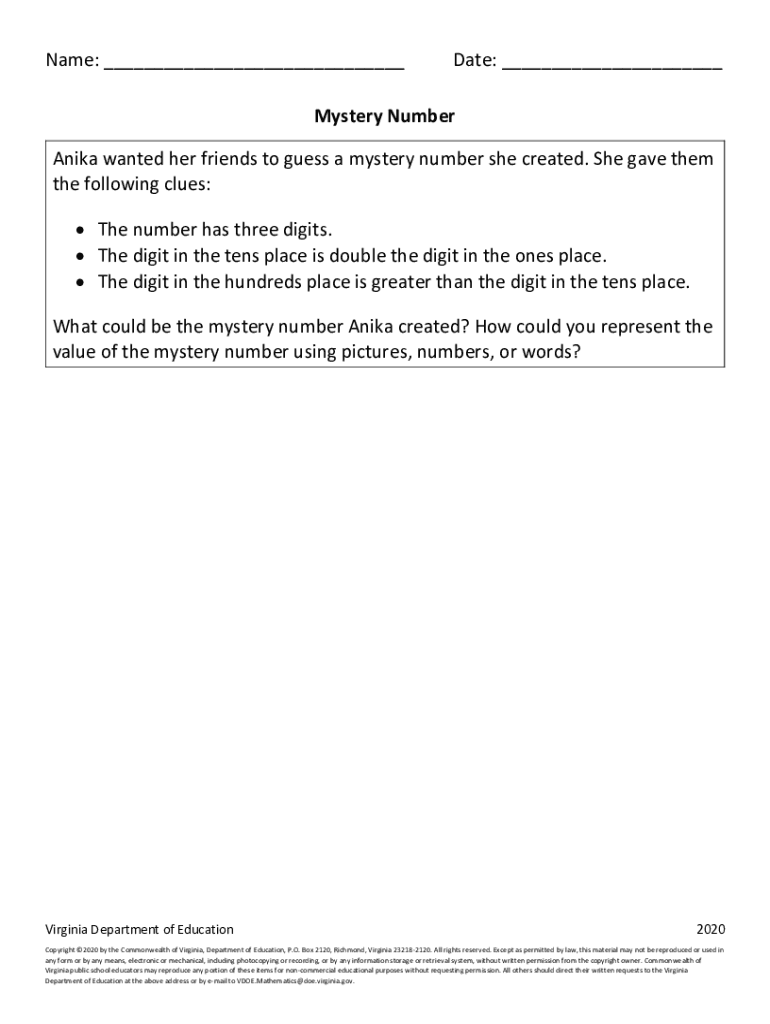 Get the free Name: Date: Mystery Number Anika wanted her friends to guess a ...