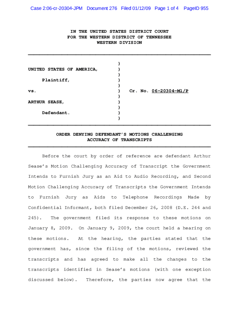 Get the free F:USERSTMPOrdersCivil06-20304 USA v. Sease - Motion ...