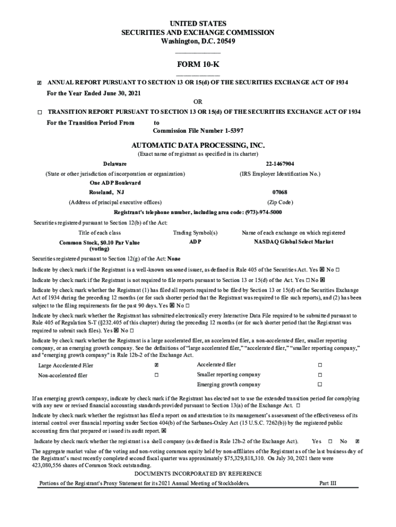 UNITED STATES SECURITIES AND EXCHANGE COMMISSION Washington, D.C. 20549 FORM 10K ANNUAL REPORT PURSUANT TO SECTION 13 OR 15(d) OF THE SECURITIES EXCHANGE ACT OF 1934 For the Year Ended June 30, 2021,
