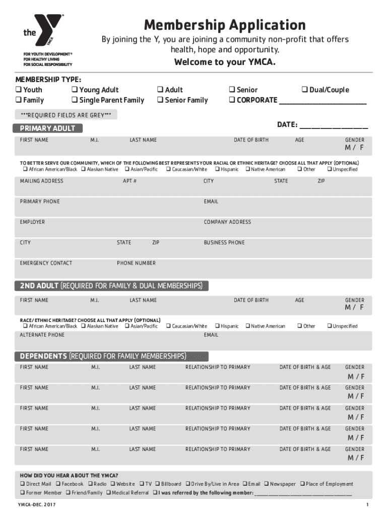 Anyone who wishes to become a member of YMCA in the USA needs to fill out the YMCA form.