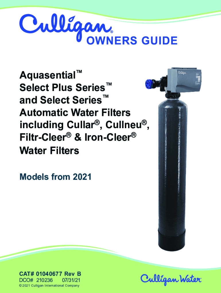 Aquasential Select Plus Series and Select Series Automatic Water Filters including Collar, Cullen, FiltrCleer & Ironclad Water Filters Models from 2021CAT# 01040677 Rev B DCO# 21023607/31/21 2021