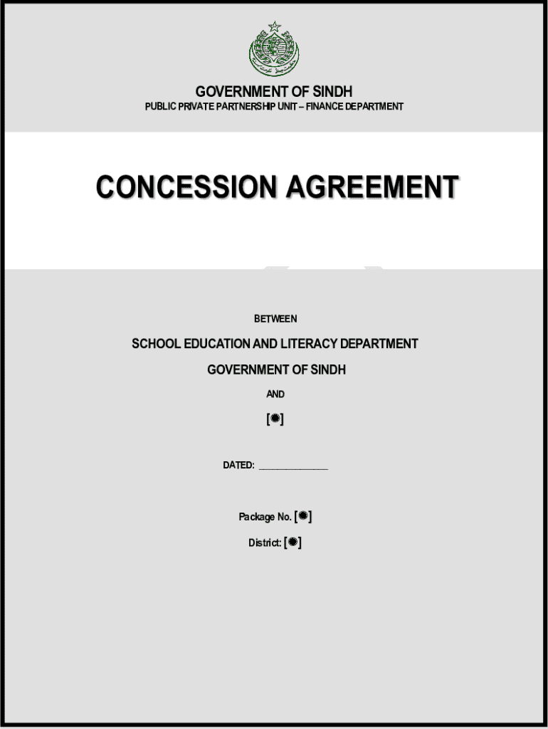 GOVERNMENT OF SINDH PUBLIC PRIVATE PARTNERSHIP UNIT FINANCE DEPARTMENTCONCESSION AGREEMENTBETWEENSCHOOL EDUCATION AND LITERACY DEPARTMENT GOVERNMENT OF SINDH AND DATED: Package No. District: TABLE