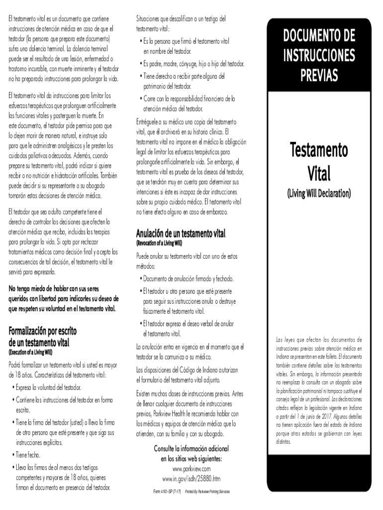 Read the provided information and instructions carefully to understand the purpose and process of the testamento vital.
