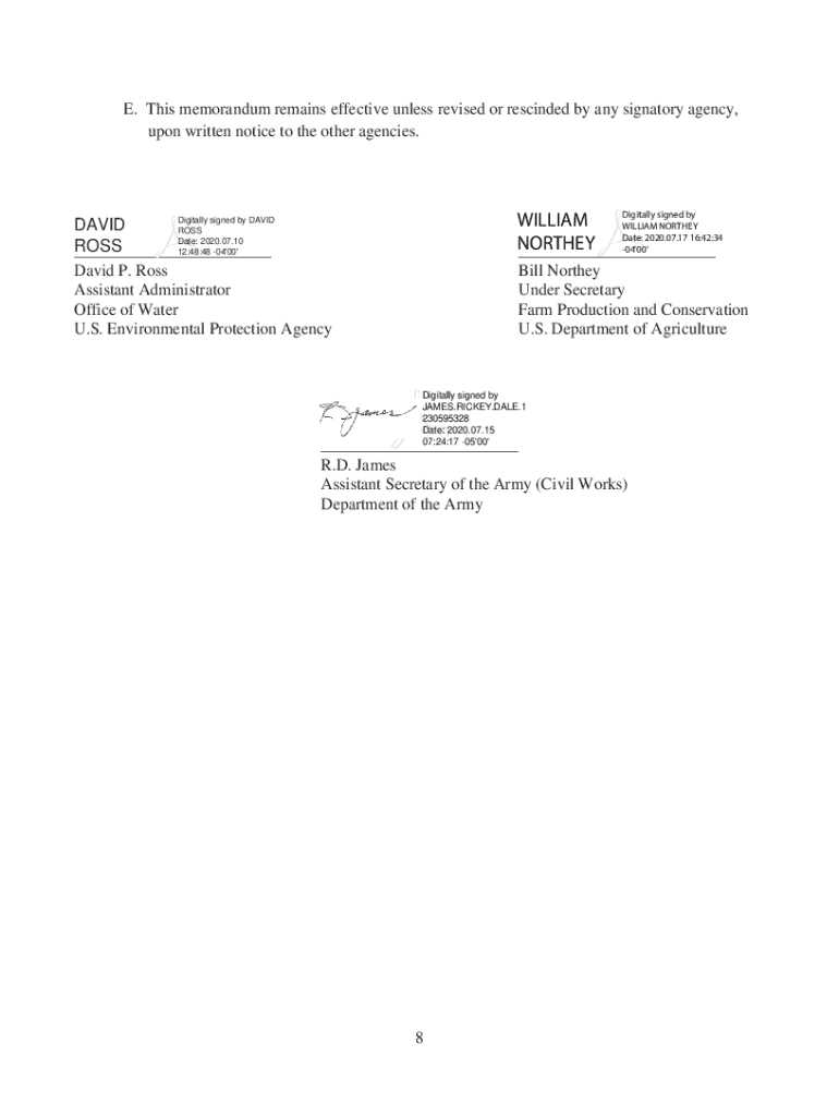 MEMORANDUM TO THE FIELD BETWEEN THE U.S. DEPARTMENT OF AGRICULTURE, NATURAL RESOURCES CONSERVATION SERVICE (ARCS), THE U.S. DEPARTMENT OF THE ARMY, CORPS OF ENGINEERS (CORPS), AND THE U.S. ENVIRONMENTAL