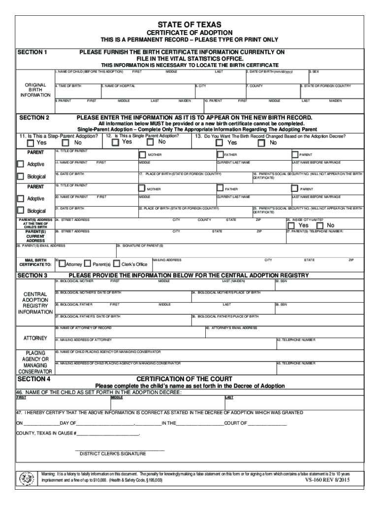 Get the free PDF Instructions & Forms for an Adult Adoption in Texas with a Name ...