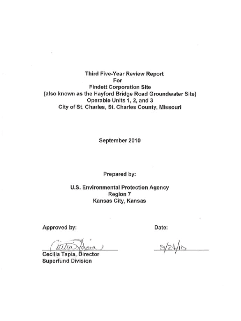 Third Livelier Review Report For Finest Corporation Site(also known as the Hanford Bridge Road Groundwater Site)Operable Units 1, 2, and 3City of st. Charles, St. Charles County, Missouri September