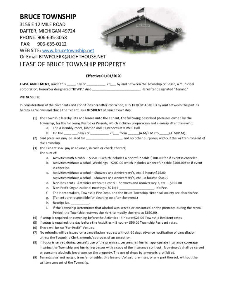 Get the free brucetownship.net wp-content uploadsTownship Hall Rental Agreement - Bruce Township ...